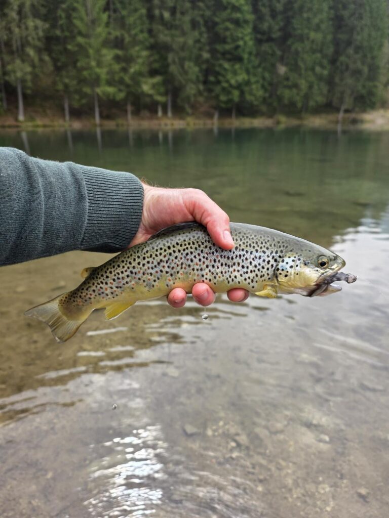 A ešte raz Revúca. Začali sme v meste nad prahom, ktorý tvorí začiatok neresiska. Obrovský kontrast. Lovný úsek prechytaný, zdanlivo prázdny, neresisko zato preplnené rybami. Nechýbali lipne do päťdesiat, ale tep mi zvýšil pohľad na dúhaka (video), ktorému do bájnych 70 veľa nechýbalo. Popri ňom vyzerali lipne ako beličky. Zastavili sme sa aj pri Slovrybe, kde sme tým pádom navýšili dav rybárov o ďaľších dvoch. Ale neoľutoval som a zachytal si už trochu vyškolené dúhaky do sýtosti. Vo vode som zahliadol aj lipne cez štyridsaťpäť a dokonca aj ešte o čosi väčšieho potočáka. Ten po dvoch náhodoch do jeho blízkosti len iritovaný odišiel kamsi po prúde. Ale aj ja som odchádzal spokojný. Určite bude čo chytať aj ďaľšie týždne, nebude to iba o podmierečných rybách, a už vôbec nie len o dúhakoch…